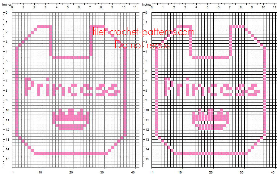 Free pattern crochet filet baby bib with text Princess and pink crown Pattern added on August 5, 2021 by Eta